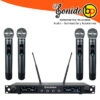 Set de 4 micrófonos inalámbricos con base para colocar en rack